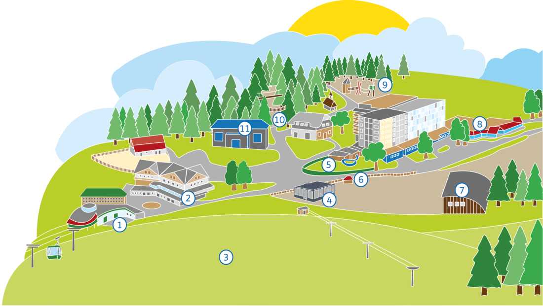 Das Naturschutzgebiet Feldberg mit dem höchsten Berg Baden-Württembergs befindet sich direkt vor der Haustür. Das Angebot besteht aus verschiedenen Wohnungstypen für bis zu 4 Personen mit einer standardmäßigen Einrichtung.